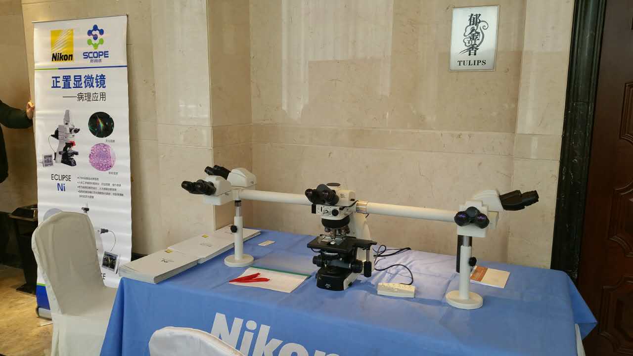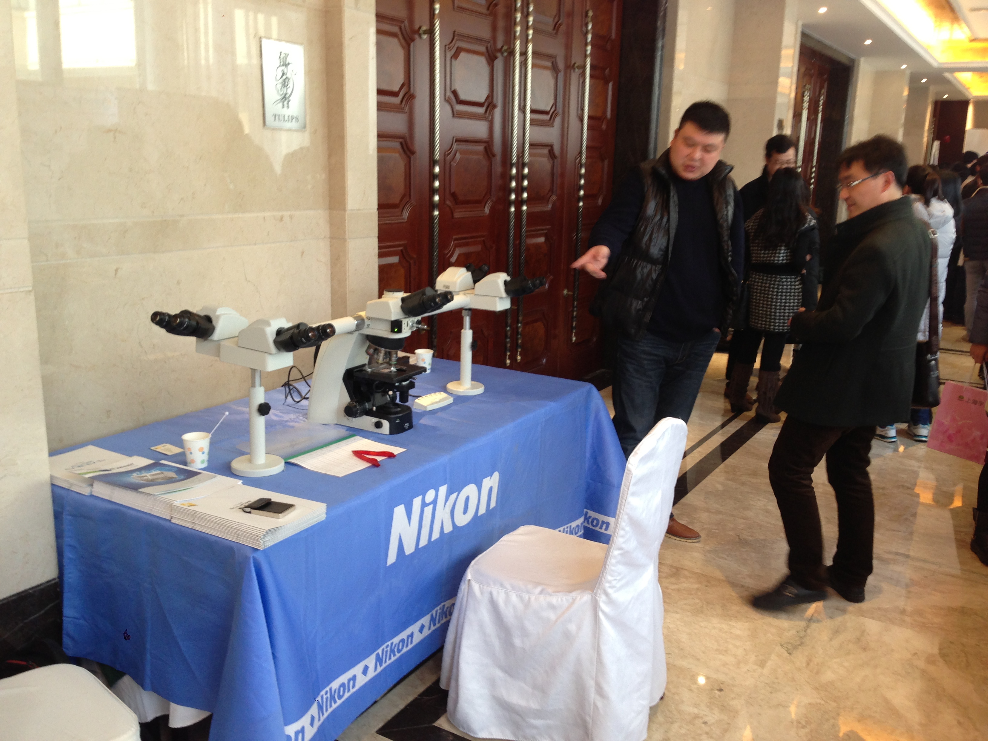 2015年江蘇省細胞病理學術會議于2015年12月25-27日在揚州花園國際大酒店召開。我公司派出四位代表參加該次會議,并展出了Nikon——Ci-E五人共覽病理顯微鏡。會議期間,與會人員紛紛來到我公司展位,在工作人員的詳細介紹與引導下使用Ci五人共覽顯微鏡,觀察病理切片,并給予一致好評。
