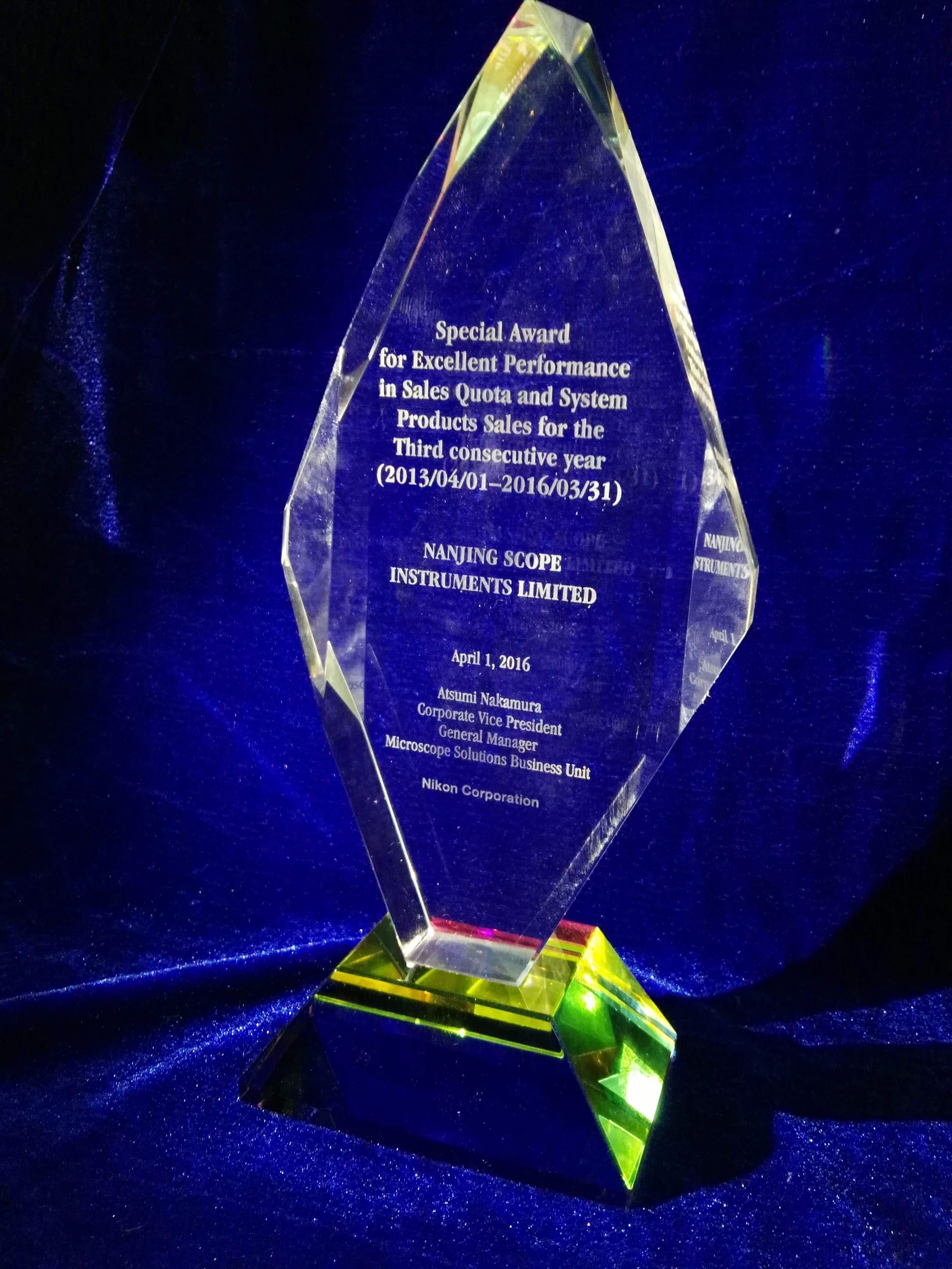 近日,尼康公司顯微鏡事業(yè)部中村部長為范總頒發(fā)銷售特別大獎,以表彰近三年斯高譜在尼康顯微鏡銷售及系統(tǒng)產(chǎn)品推廣取得的優(yōu)異成績,期待未來的日子再接再厲,共創(chuàng)輝煌.